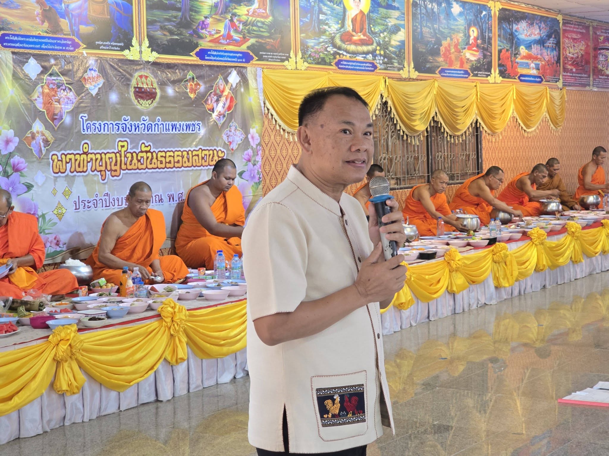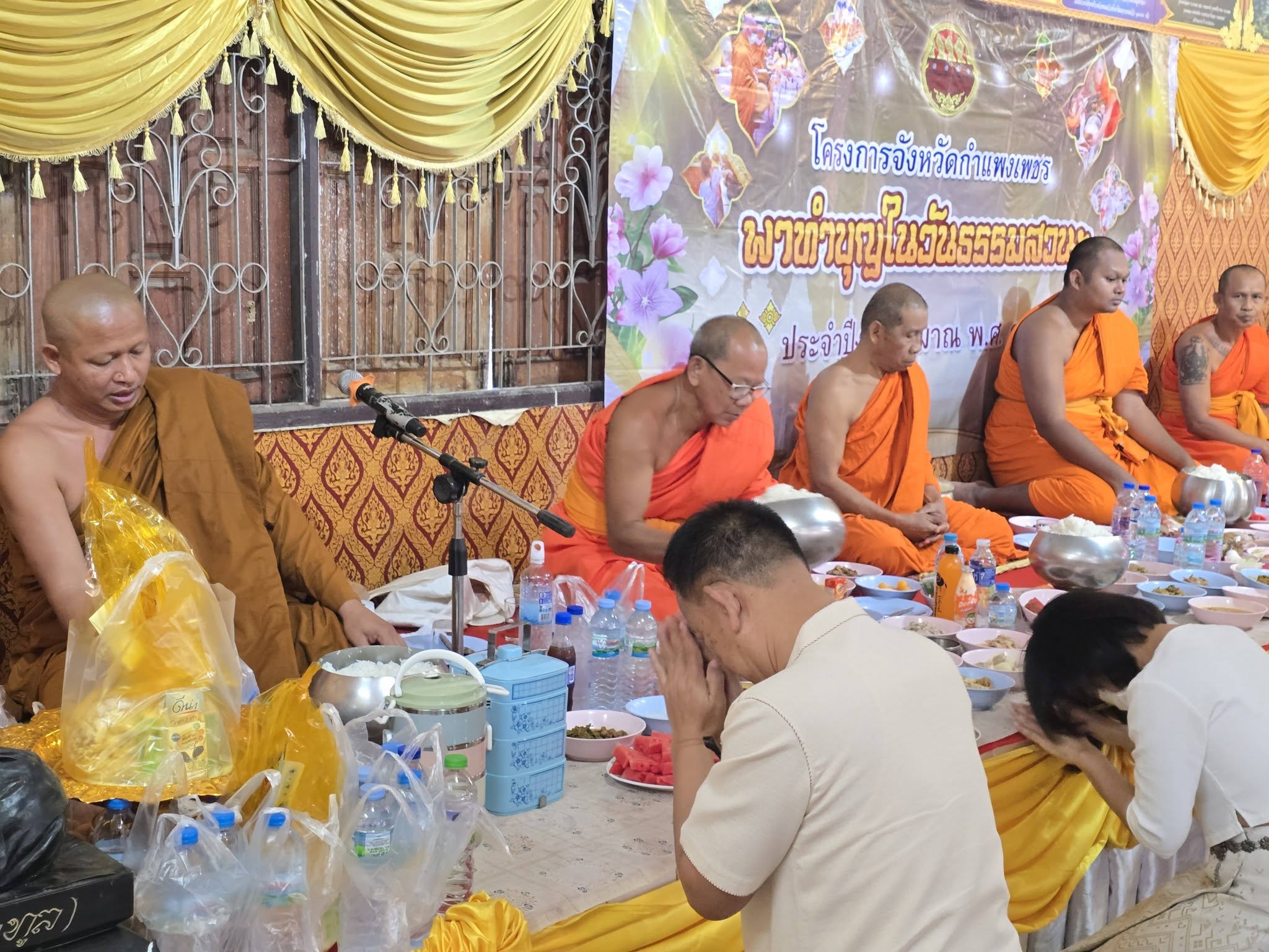 วันที่ 18 มีนาคม พ.ศ.2569 เวลา 07.00 น. นายบำรุง นิยมธรรมนิตย์ ผู้อำนวยการส่วนบริหารทั่วไป มอบเจ้าหน้าที่ฝ่ายการการเงินและบัญชี ร่วมกับหน่วยงานในจังหวัดกำแพงเพชร เข้าร่วมทำบุญตักบาตร โครงการจังหวัดกำแพงเพชรพาทำบุญในวันธรรมสวนะ ประจำปีงบประมาณ พ.ศ.2569 ครั้งที่ 8 ณ วัดอินทาราม ตำบลท่าไม้ อำเภอพรานกระต่าย จังหวัดกำแพงเพชร โดยมี นายอนุชา พัสถาน รองผู้ว่าราชการจังหวัดกำแพงเพชร เป็นประธานในพิธี จุดธูปเทียนบูชาพระรัตนตรัย พร้อมร่วมกันรับศีล กรวดน้ำรับพร ซึ่งการจัดกิจกรรมโครงการจังหวัดกำแพงเพชรพาทำบุญในวันธรรมสวนะ มีวัตถุประสงค์ให้ประชาชนได้มีโอกาสทำบุญในวันธรรมสวนะ ได้แสดงตนเป็นพุทธมามกะ ใกล้ชิดพระรัตนตรัย เข้าใจเกี่ยวกับหลักธรรมคำสอนทางพระพุทธศาสนา สามารถนำหลักธรรมไปปรับใช้ในชีวิตประจำวันได้อย่างถูกต้องและเหมาะสม