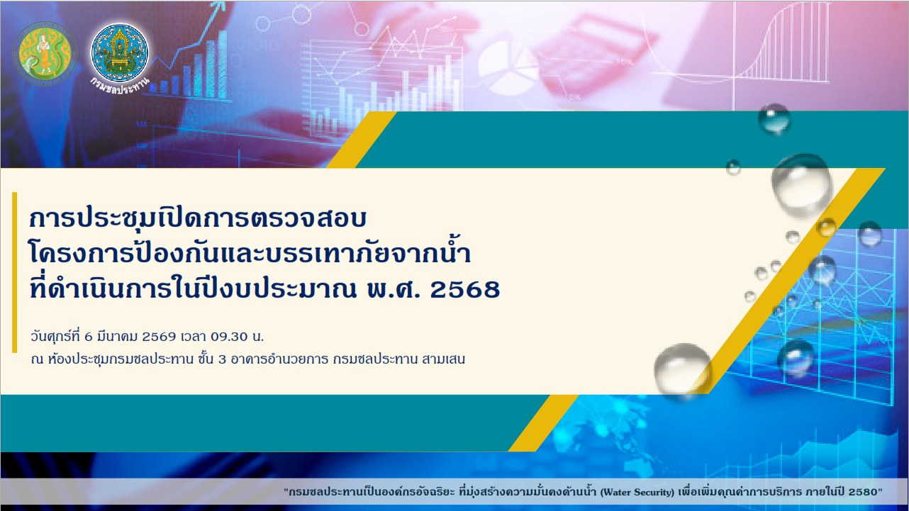 วันที่ 31 มีนาคม 2569 เวลา 13.00 น. นายนครินทร์ วงศ์ฟูเฟื่องขจร ผู้อำนวยการส่วนแผนงาน มอบหมายเจ้าหน้าที่ผู้เกี่ยวข้อง เข้าร่วมประชุมการใช้งานเว็บไซต์ฐานข้อมูลงานถ่ายโอนภารกิจให้แก่องค์กรปกครองส่วนท้องถิ่น (อปท.) ของกรมชลประทาน