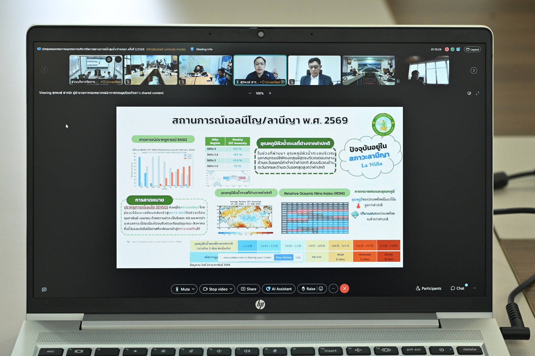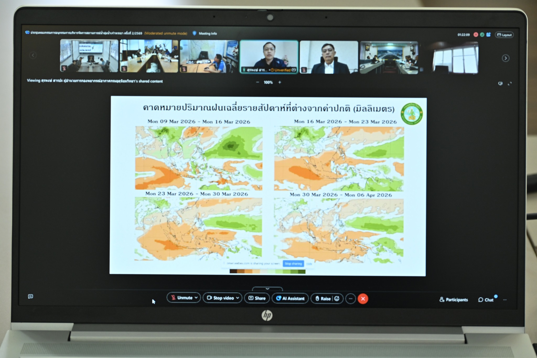 วันที่ 6 มีนาคม 2569 เวลา 09.30 น. นายสุรเดช กาบยุบล หัวหน้าฝ่ายบริหารจัดการน้ำ และเจ้าหน้าที่ผู้เกี่ยวข้อง ร่วมประชุมคณะอนุกรรมการบริหารจัดการสถานการณ์น้ำลุ่มน้ำเจ้าพระยา ครั้งที่ 2/2569 ผ่านสื่ออิเล็กทรอนิกส์ ณ ศูนย์ปฏิบัติการน้ำอัจฉริยะ (SWOC 04) สำนักงานชลประทานที่ 4 เพื่อเพื่อรับทราบ สภาพอากาศ สถานการณ์น้ำ การคาดการณ์ พิจารณาเสนอความเห็นประกอบการให้ความเห็นต่อ (ร่าง) มาตราการรับมือฤดูฝน ปี 2569 และทบทวนแผนป้องกันและแก้ไขสถานการณ์น้ำลุ่มน้ำเจ้าพระยา เพื่อให้การบริหารจัดการน้ำเป็นไปอย่างมีประสิทธิภาพและเป็นไปตามแผนที่กำหนดไว้