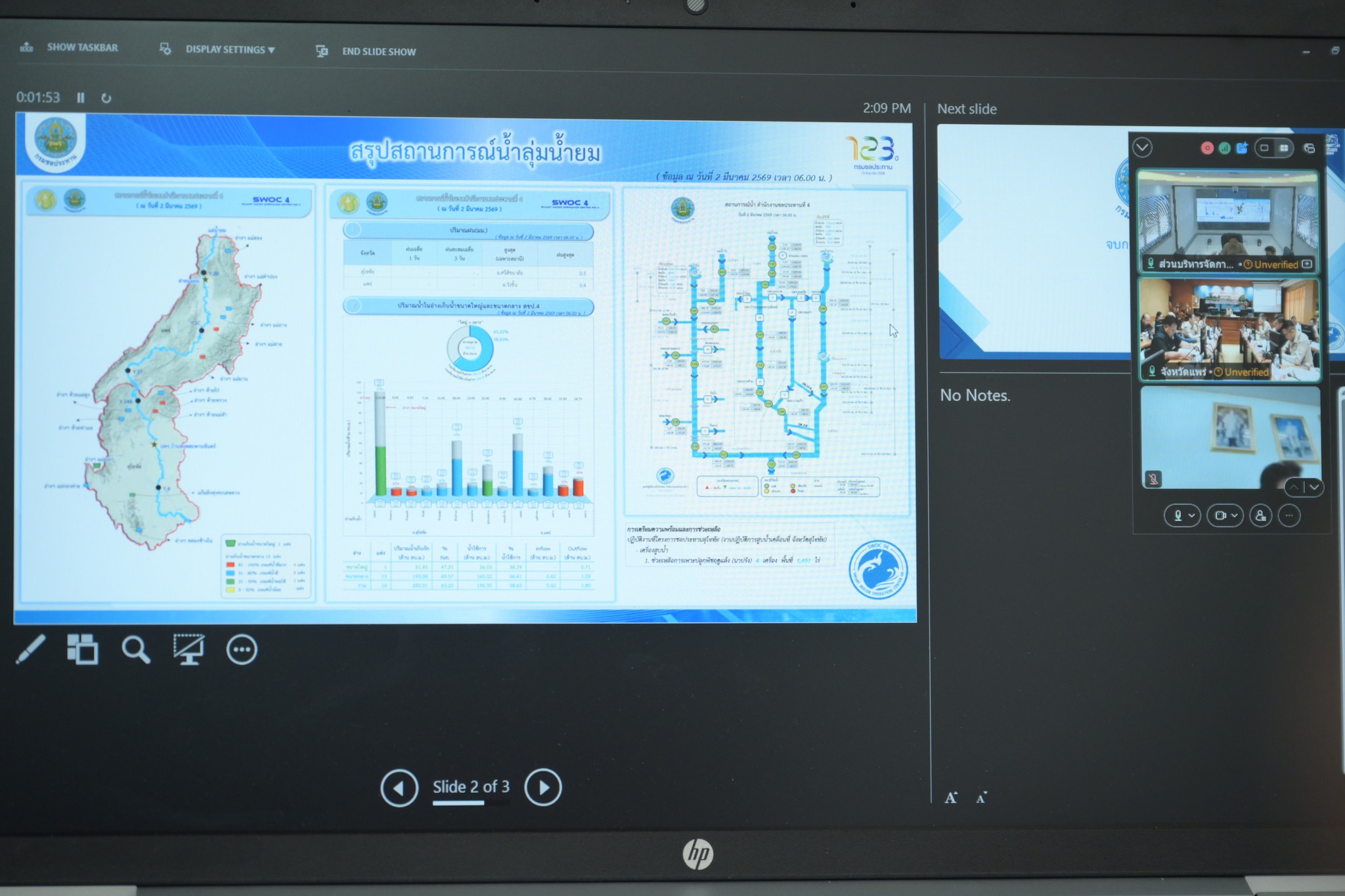วันที่ 2 มีนาคม 2569 เวลา 13.30 น. นายอภินันทร์ จ่าพันดุง ผู้อำนวยการส่วนบริหารจัดการน้ำและบำรุงรักษา และเจ้าหน้าที่ผู้เกี่ยวข้อง เข้าร่วมประชุมคณะกรรมการลุ่มน้ำยม ครั้งที่ 1/2569 ผ่านระบบ Zoom meeting ณ ห้องประชุมจดหมายเหตุ ชั้น 2 ศาลากลางจังหวัดแพร่ อำเภอเมือง จังหวัดแพร่ มายัง ณ ห้องประชุม SWOC อาคารบริหารจัดการน้ำและบำรุงรักษา เพื่อรับทราบ สภาพอากาศ สถานการณ์น้ำ การคาดการณ์ และร่วมกันพิจารณามาตราการรับมือฤดูฝน ปี 2569 ลุ่มน้ำยม การเตรียมความพร้อมบริหารจัดการน้ำฤดูแล้ง ปี 2568/2569 และทบทวนแผนป้องกันและแก้ไขภาวะน้ำท่วมลุ่มน้ำยม เพื่อให้การบริหารจัดการน้ำเป็นไปอย่างมีประสิทธิภาพและเป็นไปตามแผนที่กำหนดไว้