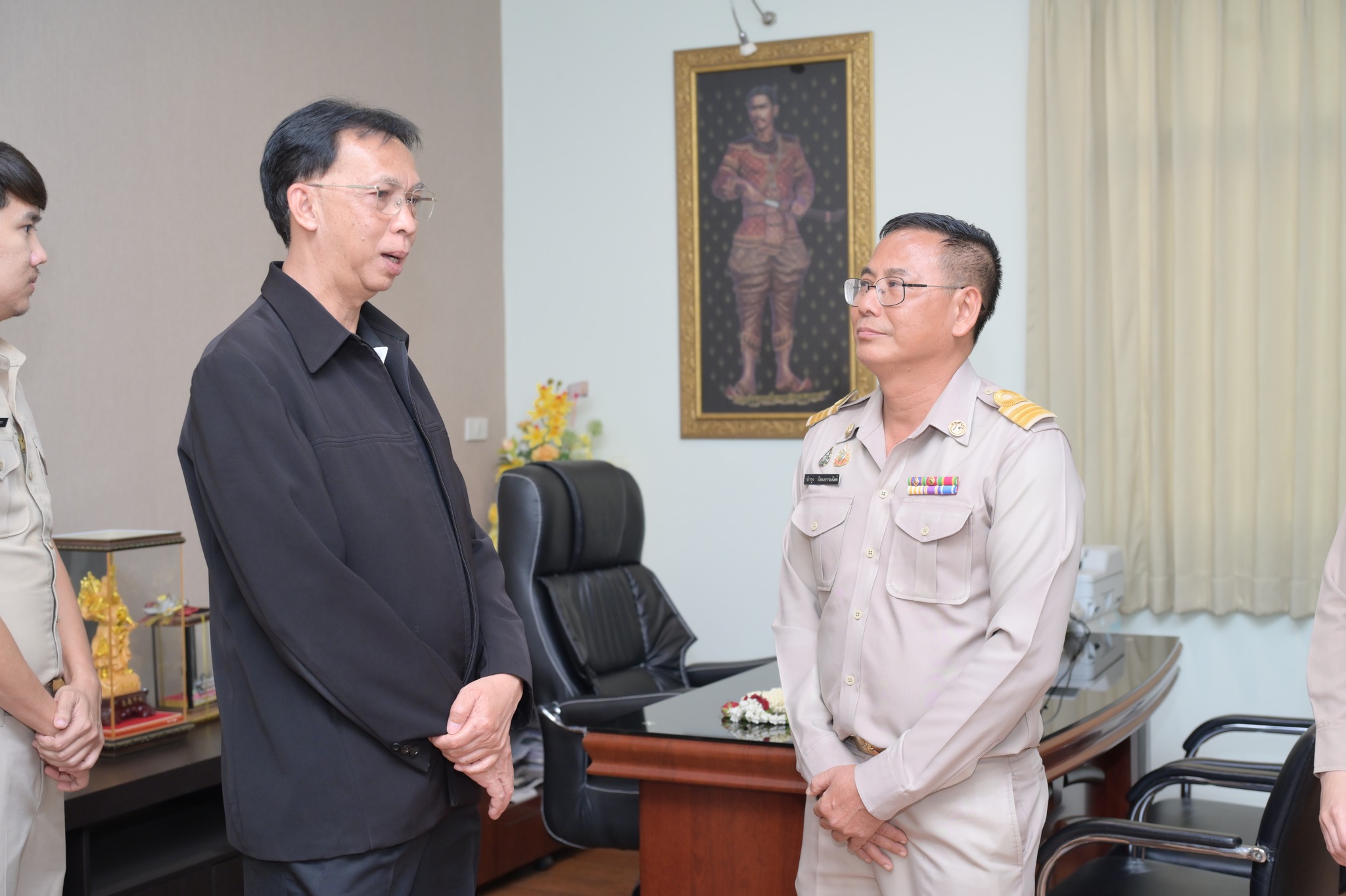 อีกทั้งเข้าพบ นายปิยะ ลืออุติกุลวงศ์ ผู้อำนวยการสำนักงานชลประทานที่ 4 และ นายบุญธรรม ปานเปี่ยมโภช รองผู้อำนวยการสำนักงานชลประทานที่ 4 เนื่องในโอกาสย้ายมาดำรงตำแหน่งผู้อำนวยการส่วนบริหารทั่วไป สำนักงานชลประทานที่ 4 โดยผู้อำนวยการสำนักงานฯ ได้ให้คำแนะนำในการปฏิบัติงานเพื่อประโยชน์สูงสุดต่อประชาชน ณ ห้องทำงานผู้อำนวยการสำนักงานชลประทานที่ 4 ตำบลหนองปลิง อำเภอเมือง จังหวัดกำแพงเพชร