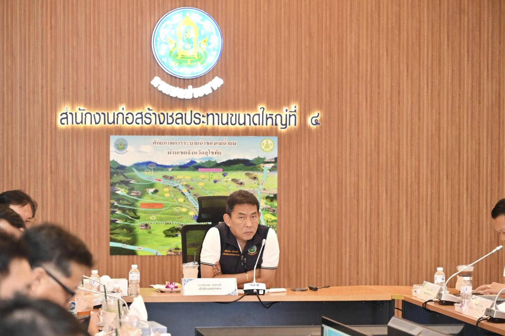 โดยช่วงเช้า ลงพื้นที่ประชุมติดตามความพร้อมในการบริหารจัดการน้ำและพัฒนาแหล่งน้ำในพื้นที่แม่น้ำยม–น่าน ณ ห้องประชุมสำนักงานก่อสร้างชลประทานขนาดใหญ่ที่ 4 อำเภอสวรรคโลก จังหวัดสุโขทัย โดยมีการนำเสนอภาพรวมการบริหารจัดการน้ำในพื้นที่ลุ่มน้ำยม รวมถึงแผนงานป้องกันและบรรเทาอุทกภัยในพื้นที่จังหวัดสุโขทัย ตลอดจนแนวทางแก้ไขปัญหาน้ำท่วมในลุ่มน้ำยมอย่างยั่งยืน ทั้งนี้ในส่วนของสำนักงานชลประทานที่ 4 มีแผนพัฒนาแหล่งน้ำในเขตลุ่มน้ำยม ในพื้นที่ จังหวัดแพร่ และจังหวัดสุโขทัย จำนวน 59 โครงการ โดยมีความจุเก็บกักรวม 769.13 ล้าน ลบ.ม. ซึ่งจะสามารถช่วยเหลือประชาชนในพื้นที่กว่า 240,977 ไร่